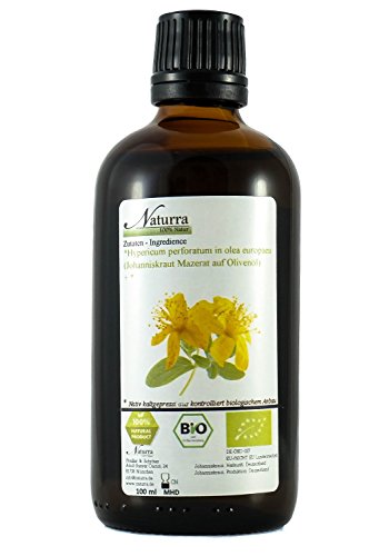 BIO Johanniskraut Mazerat in schonend kaltgepressten Olivenöl und veredelt mit einem 2. Naturra Bio Öl