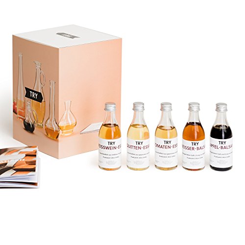 Essige stehen nicht nur in jeder Küche, sondern kommen in jedem Kulturkreis in der ganzen Welt vor. Mit dem TRY Essig Set erfahren Sie, was gute Essige ausmacht, wie sie schmecken und hergestellt werden. Mit der Box erhalten Sie fünf unterschiedliche Essigsorten, die aus verschiedenen Obst- und Gemüsesorten hergestellt werden! Das beigelegte Booklet fasst auf 60 Seiten die wichtigsten Informationen zum Thema Essig zusammen. Das Set eignet sich prima sowohl zum eigenen Verkosten auch zum Verschenken.