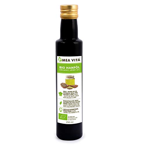 MeaVita Bio Hanföl ist frei von künstlichen Zusatzstoffen wie Glutamat, Geschmacksverstärkern, Farbstoffen, Aromen und Konservierungsstoffen. Es enthält keine Füllstoffe und es wird kein Salz, Dextrose, Stärke oder Zucker beigemischt.