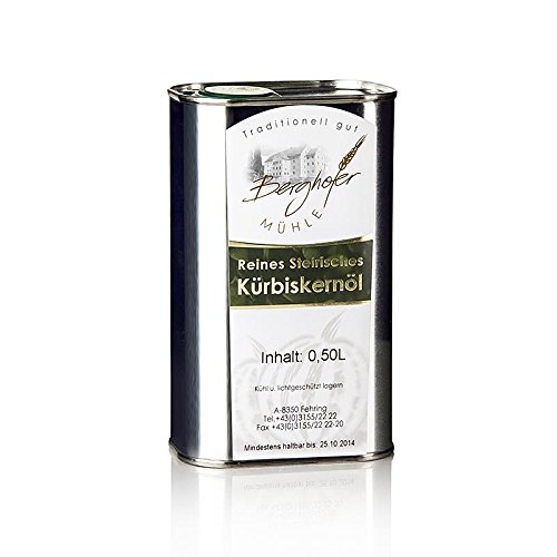 Kürbiskernöl aus der Steiermark, 100% rein, Berghofer-Mühle, 500 ml günstig kaufen von Berghofer Mühle im Onlineshop für Fette, Öle und Öl-Kapseln.