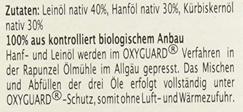 Diese wohlschmeckende Mischung aus wertvollem nativem Lein-, Hanf- und Kürbiskernöl hat einen hohen Gehalt an mehrfach ungesättigten Fettsäuren. Durch das enthaltene Lein- und Hanföl ist dieses Öl zudem reich an Omega-3-Fettsäuren (Alpha-Linolensäure: 21, 9 g pro 100 g Öl). Die reichlich enthaltenen ungesättigten Fettsäuren tragen dazu bei einen normalen Cholesterinspiegel im Blut aufrecht zu erhalten. Unterstützend im Rahmen einer abwechslungsreichen und ausgewogenen Ernährung sowie einer gesunden Lebensweise. Mit Sorgfalt in der Rapunzel Ölmühle im Allgäu hergestellt.