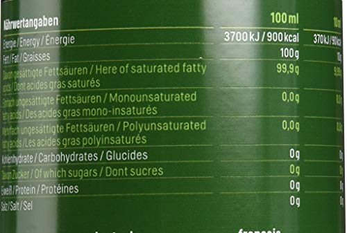 Das Öl ist durchsichtig, geruchs- und geschmacksneutral zur Ergänzung einer ketogenen Diät oder Paleo-Ernährung.
