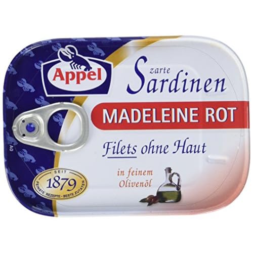 Lieferumfang: 10 x 105g Dose Appel Sardinen-Filets “Madeleine rot” in der bewährten Dauerkonserve, lange haltbar – ohne Kühlung