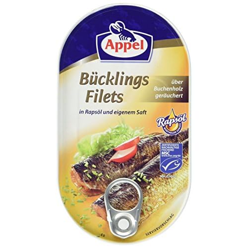 Lieferumfang: 13 x 190g Dose Appel Bücklingsfilets in Rapsöl und eigenem Saft in der bewährten Dauerkonserve, lange haltbar – ohne Kühlung