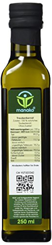 Traubenkernöl weist einen der höchsten Anteile an ungesättigten Fettsäuren aller Pflanzenöle auf und eignet sich als vorzügliches Speiseöl und diätisches Nahrungsmittel. Es hat einen hohen Rauchpunkt und eignet sich besonders für Salate und Gemüsegerichte. Traubenkernöl ist wegen seinem Gehalt an wertvollen Fettsäuren und hohem Vitamin-E Gehalt auch ein wertvoller Bestandteil von kosmetischen Präparaten und weist hautpflegende Eigenschaften auf.